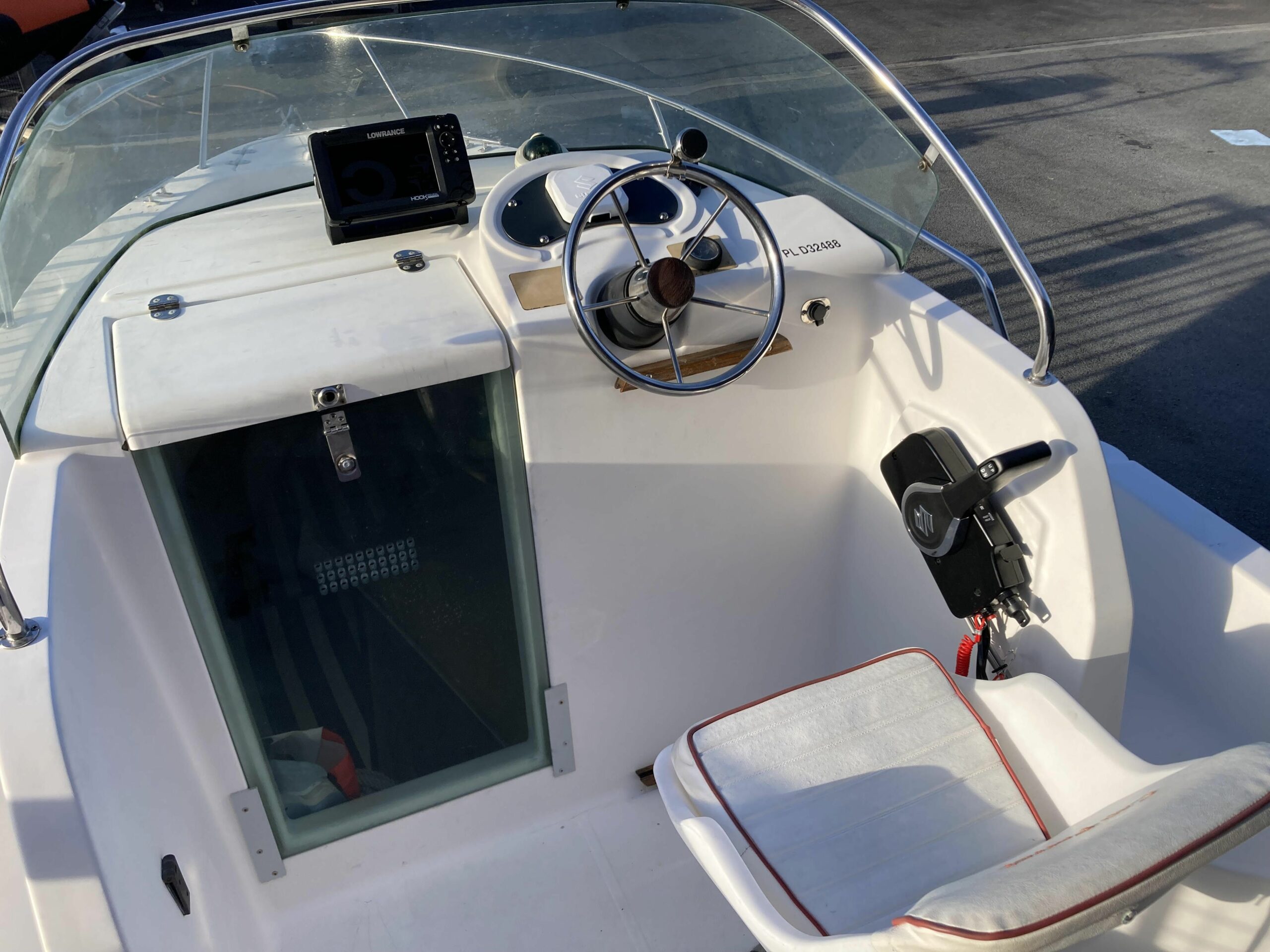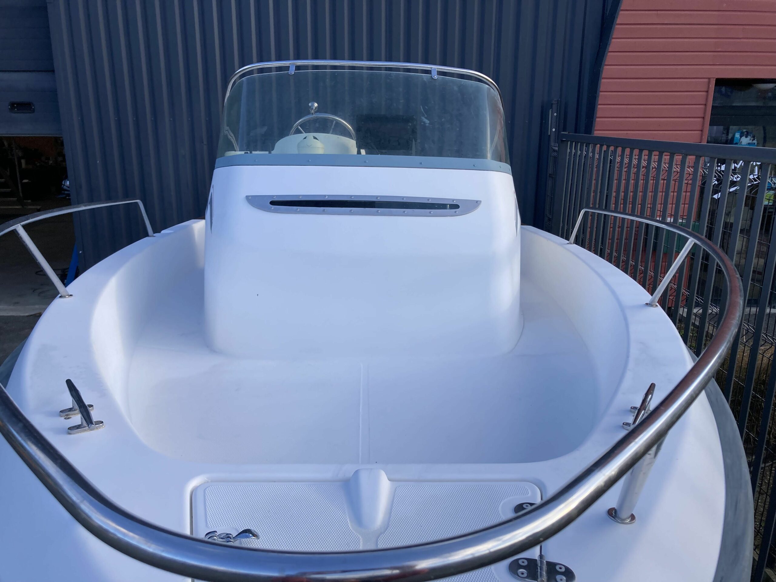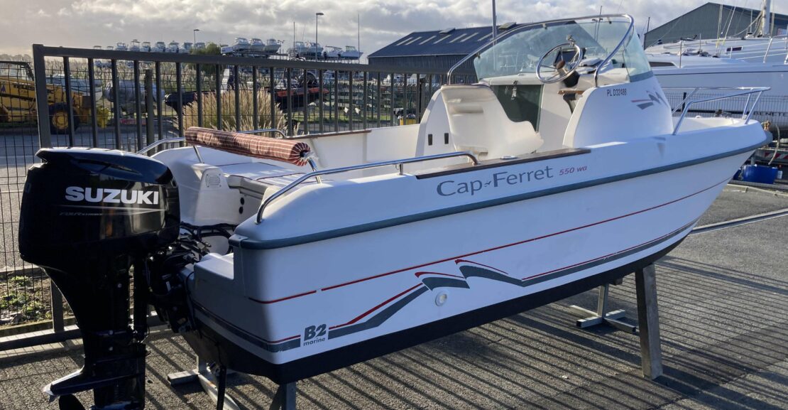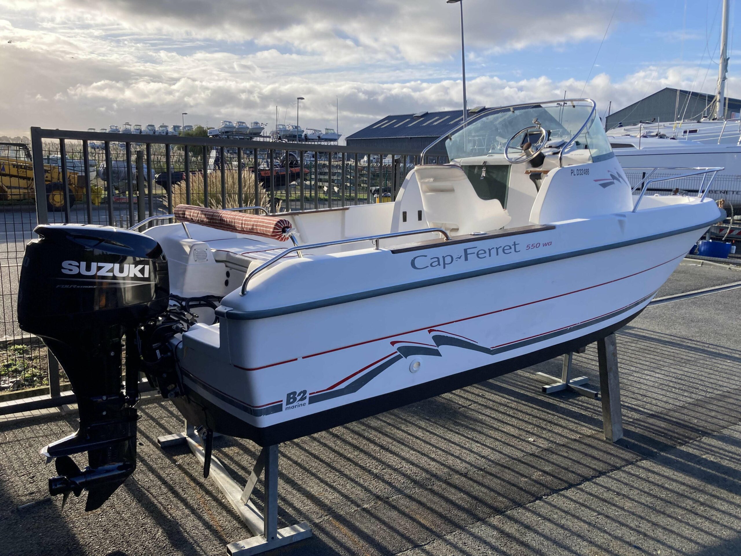 Coque open avec cabine, version WA, B2 Marine CAP FERRET 550 WA de 2006 remotorisé avec un SUZUKI DF 50 ATL NEUF et garantie 5 ans. Bateau en bel état, avec électronique neuf. Vendu avec son charriot de mise à l’eau , son mouillage et son armement. Visible sur notre parc occasion de Paimpol, contact : Emeric 06 47 31 11 70