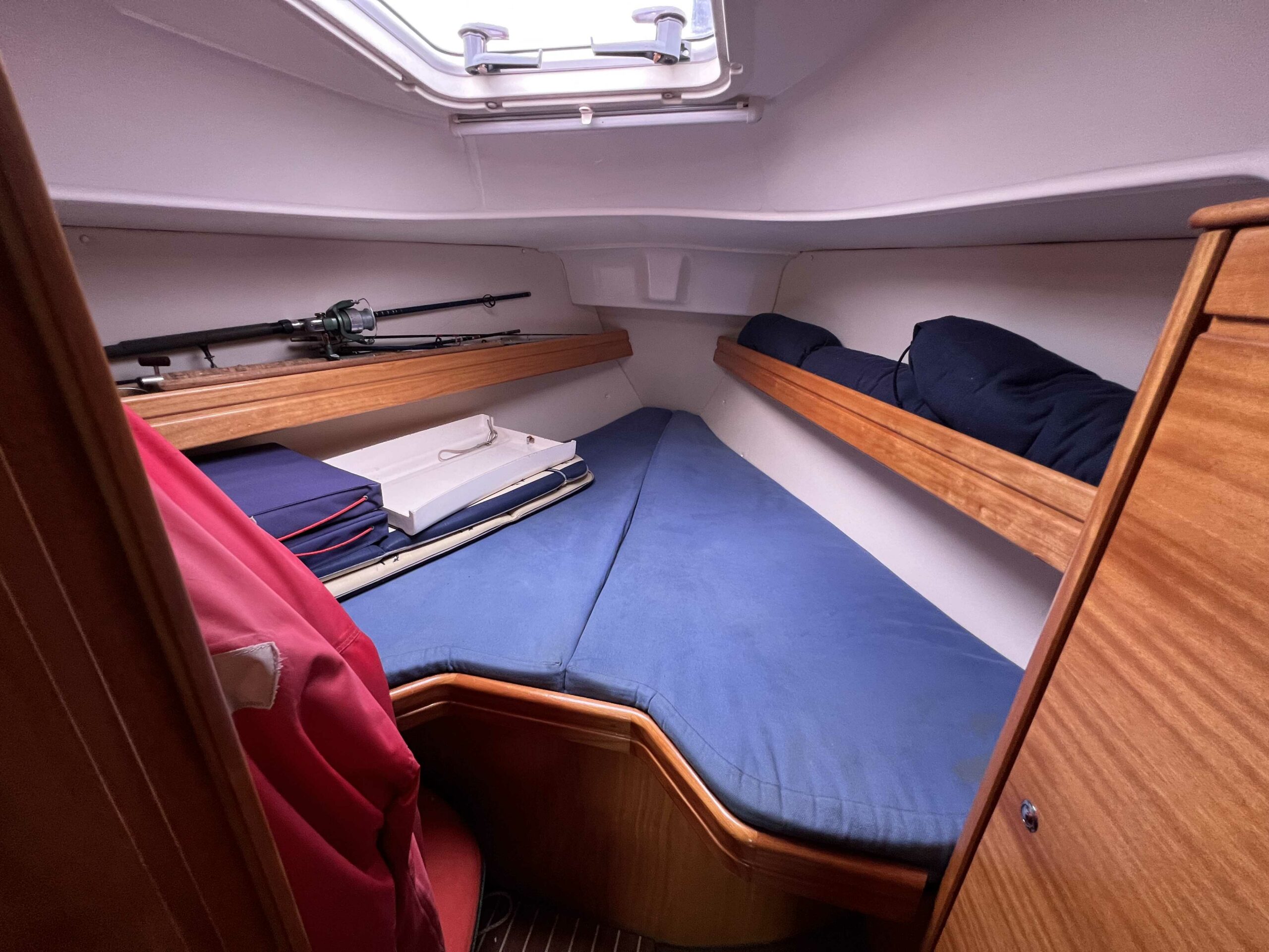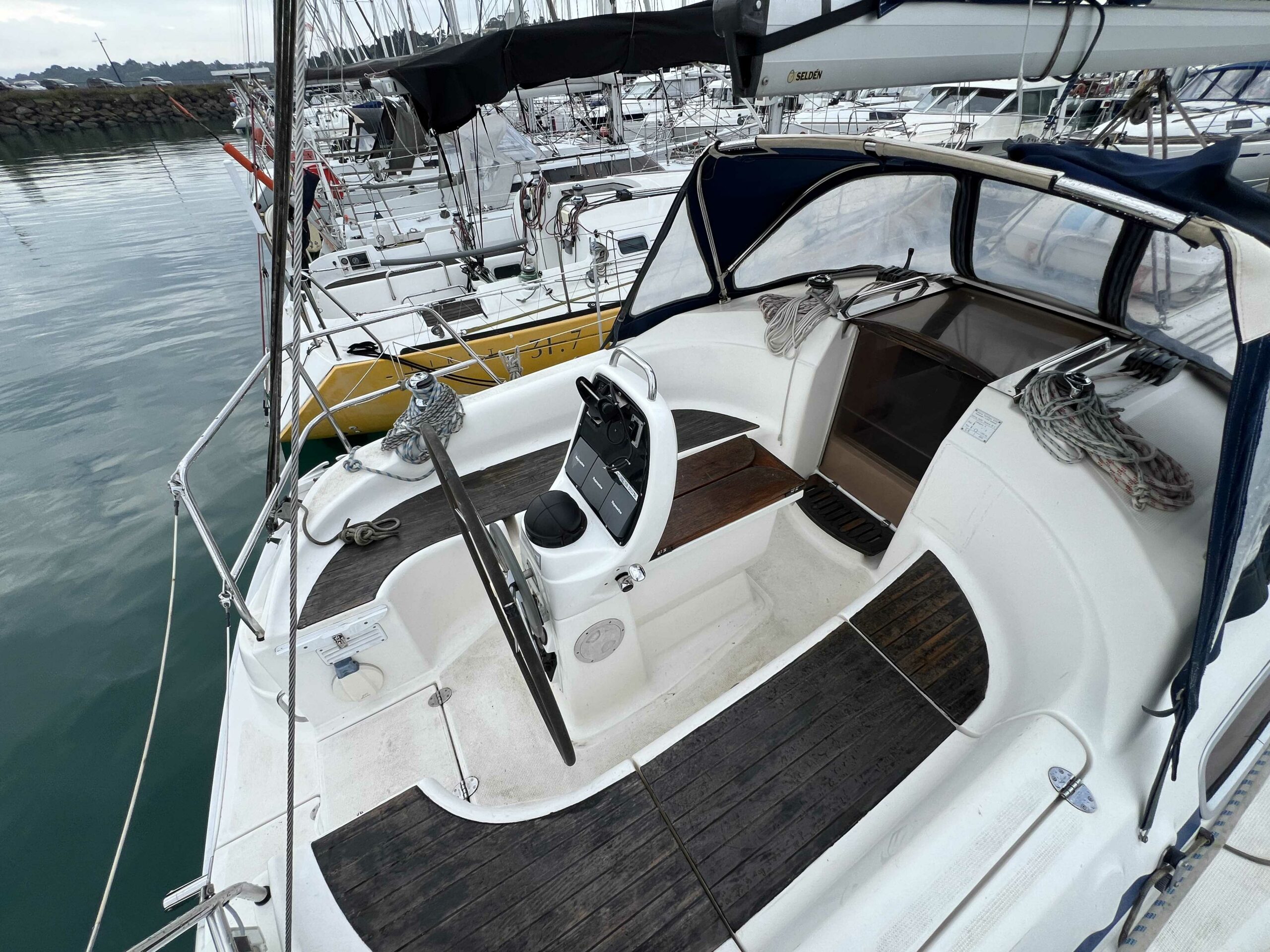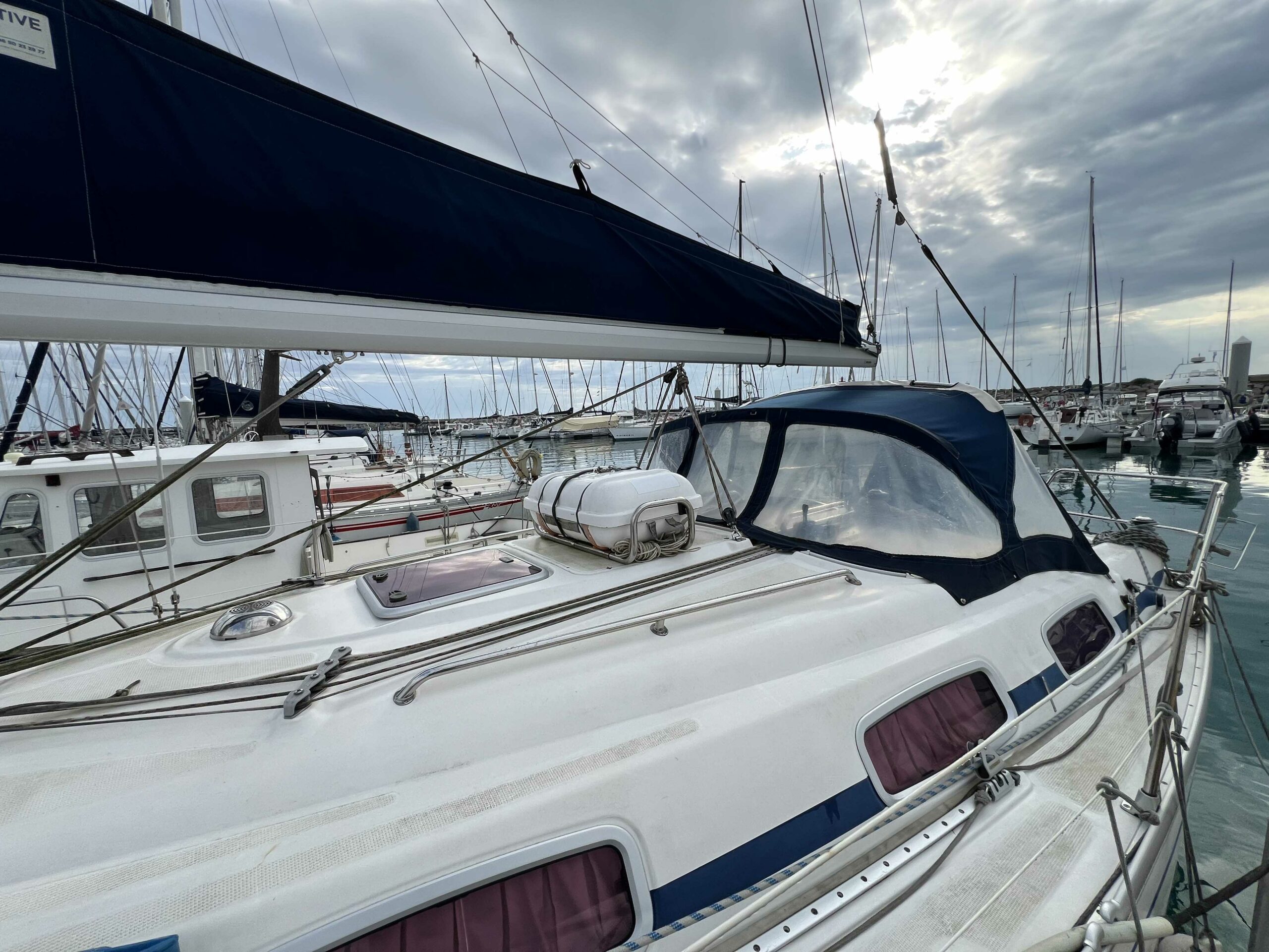 Pour les voiles, GV avec lazy-bag (2023) et lazy-jack, Génois (2012) sur enrouleur et un grément Spi.