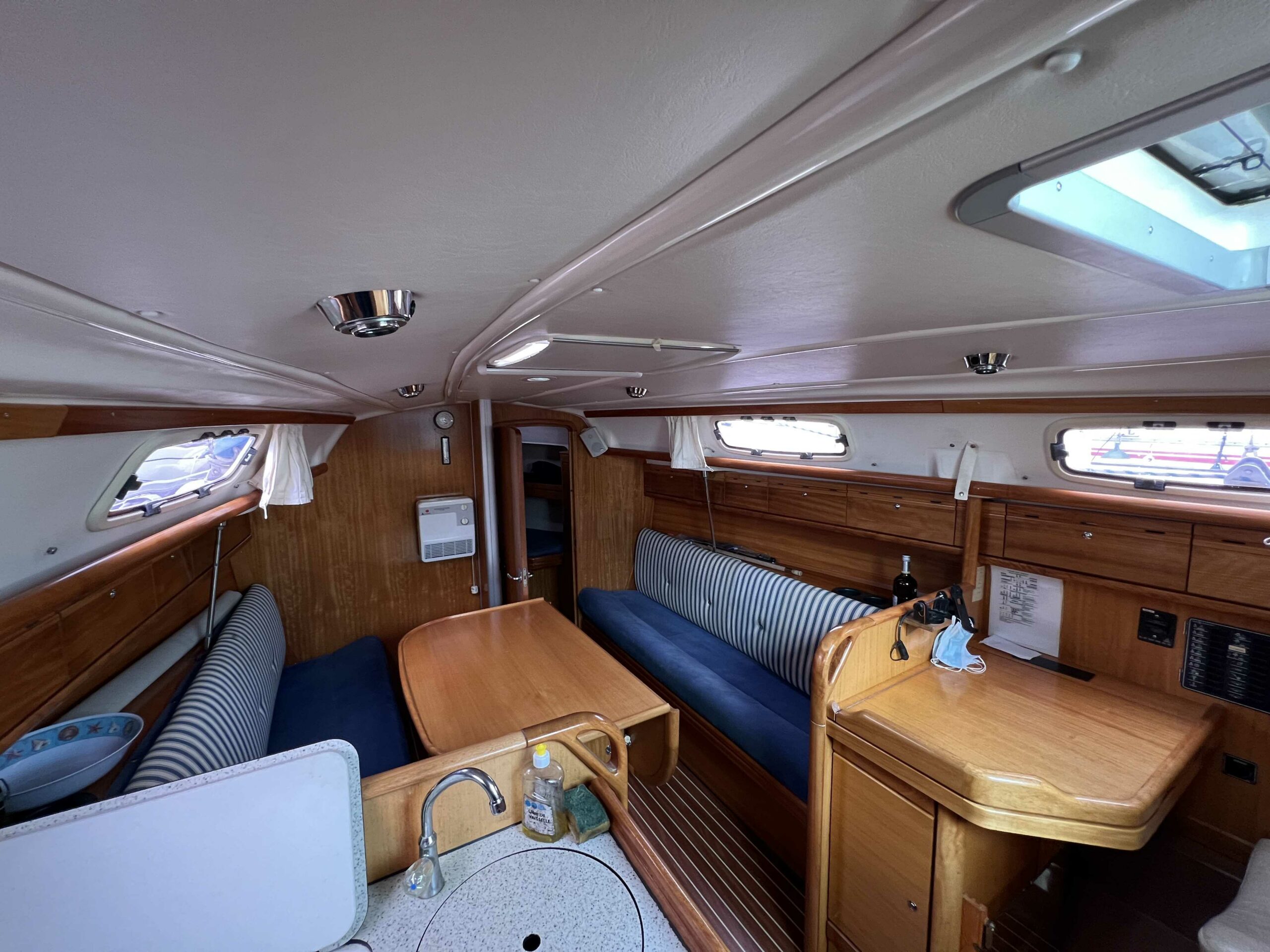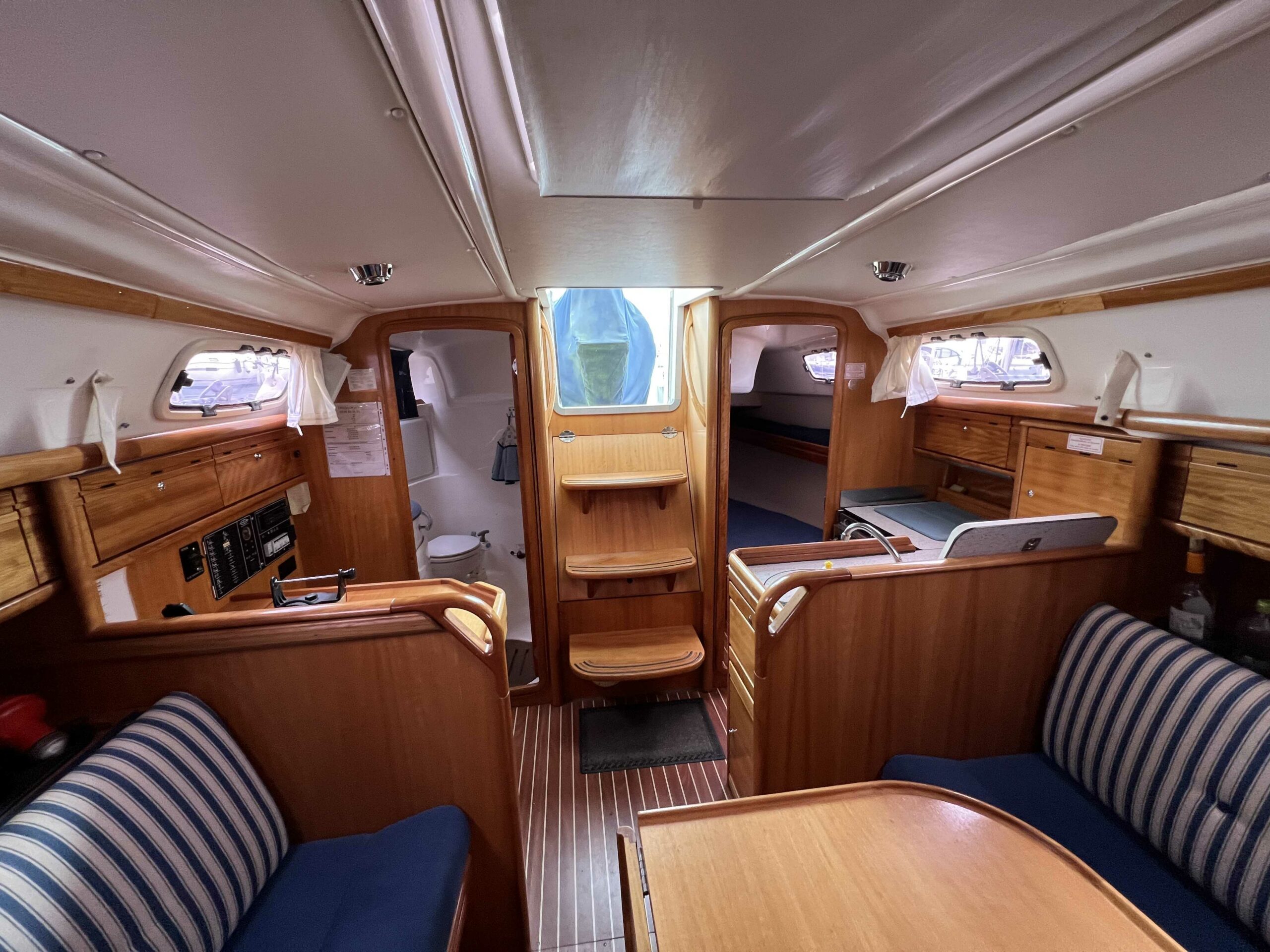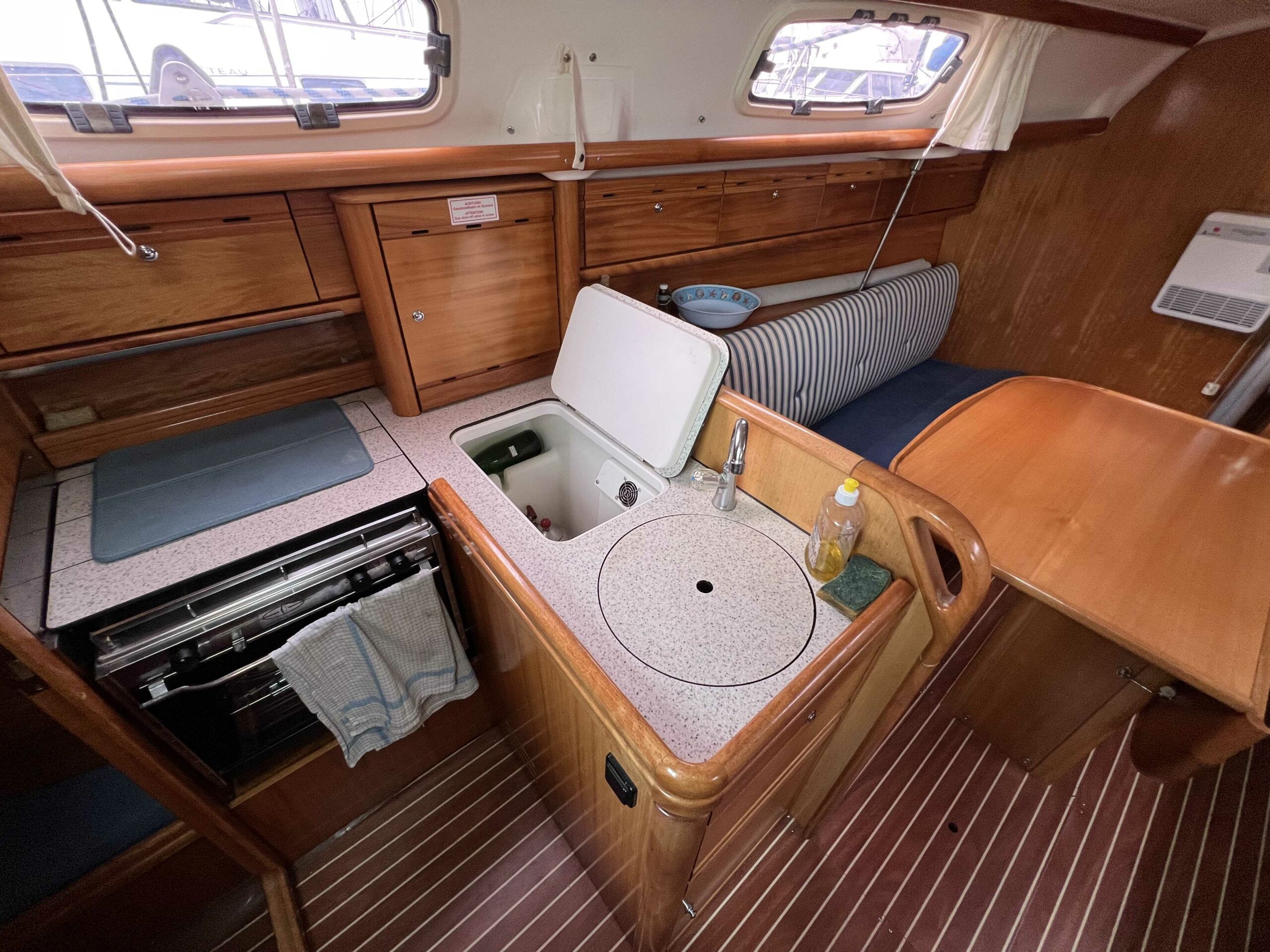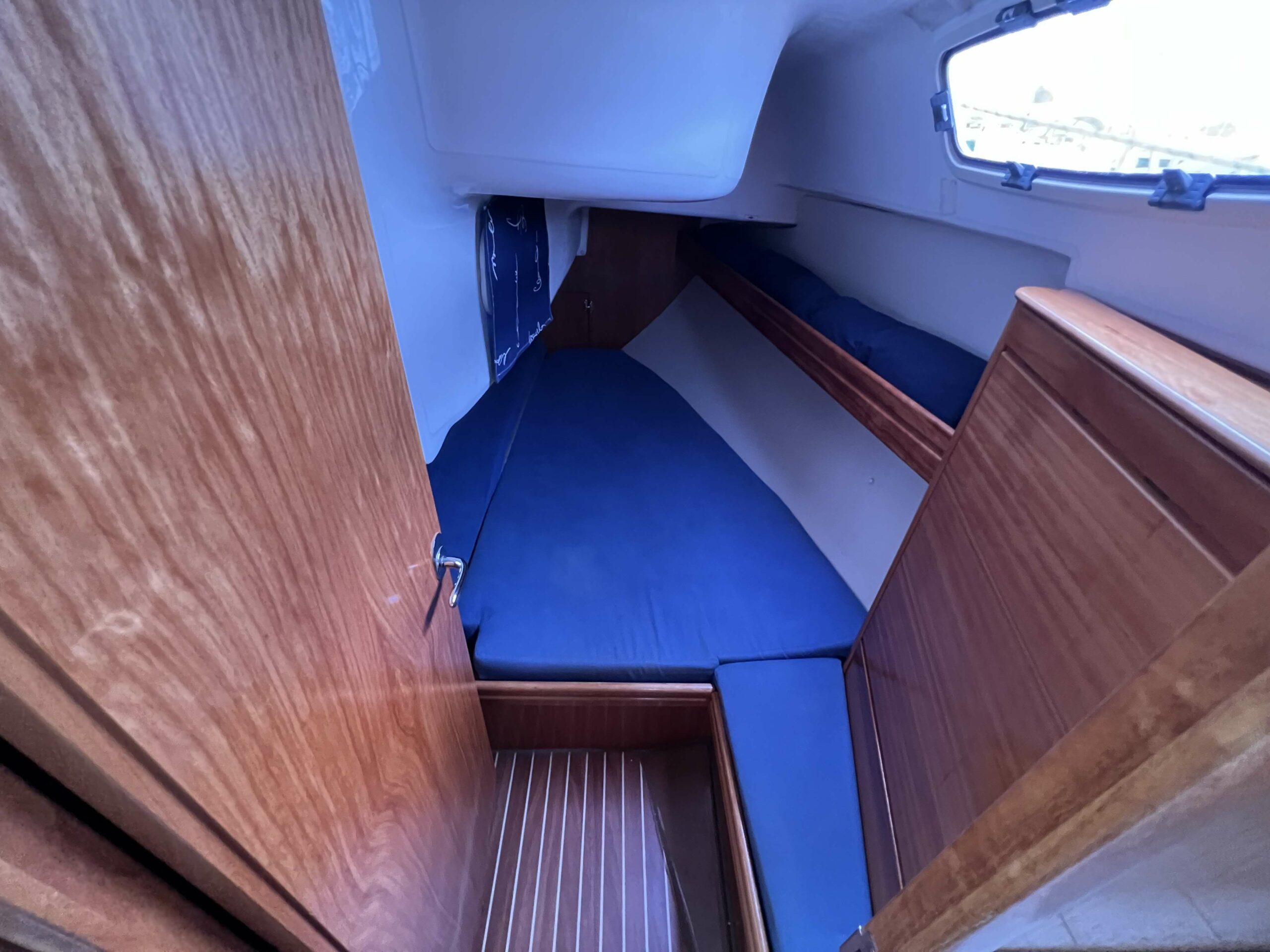 Pour les voiles, GV avec lazy-bag (2023) et lazy-jack, Génois (2012) sur enrouleur et un grément Spi.