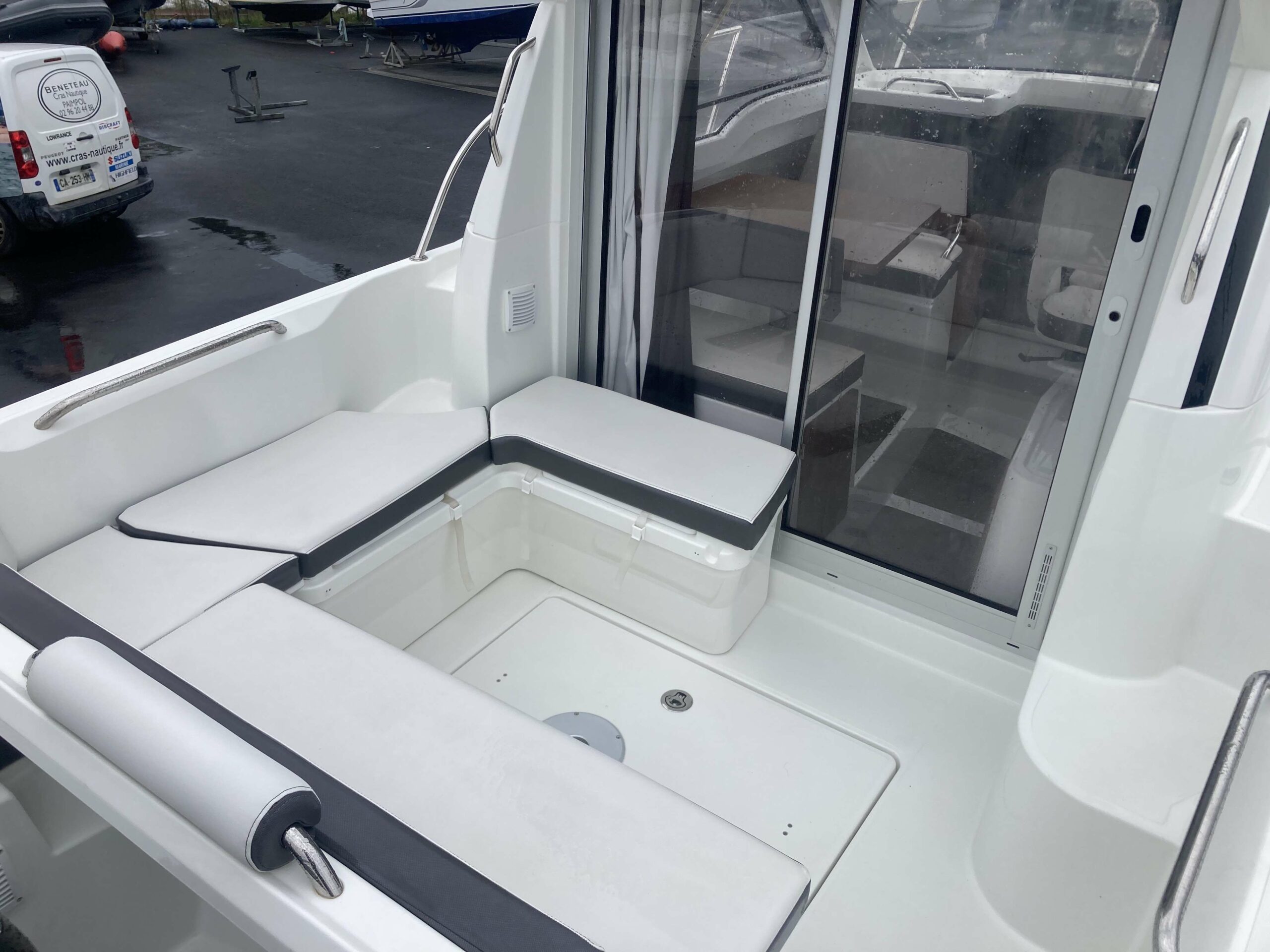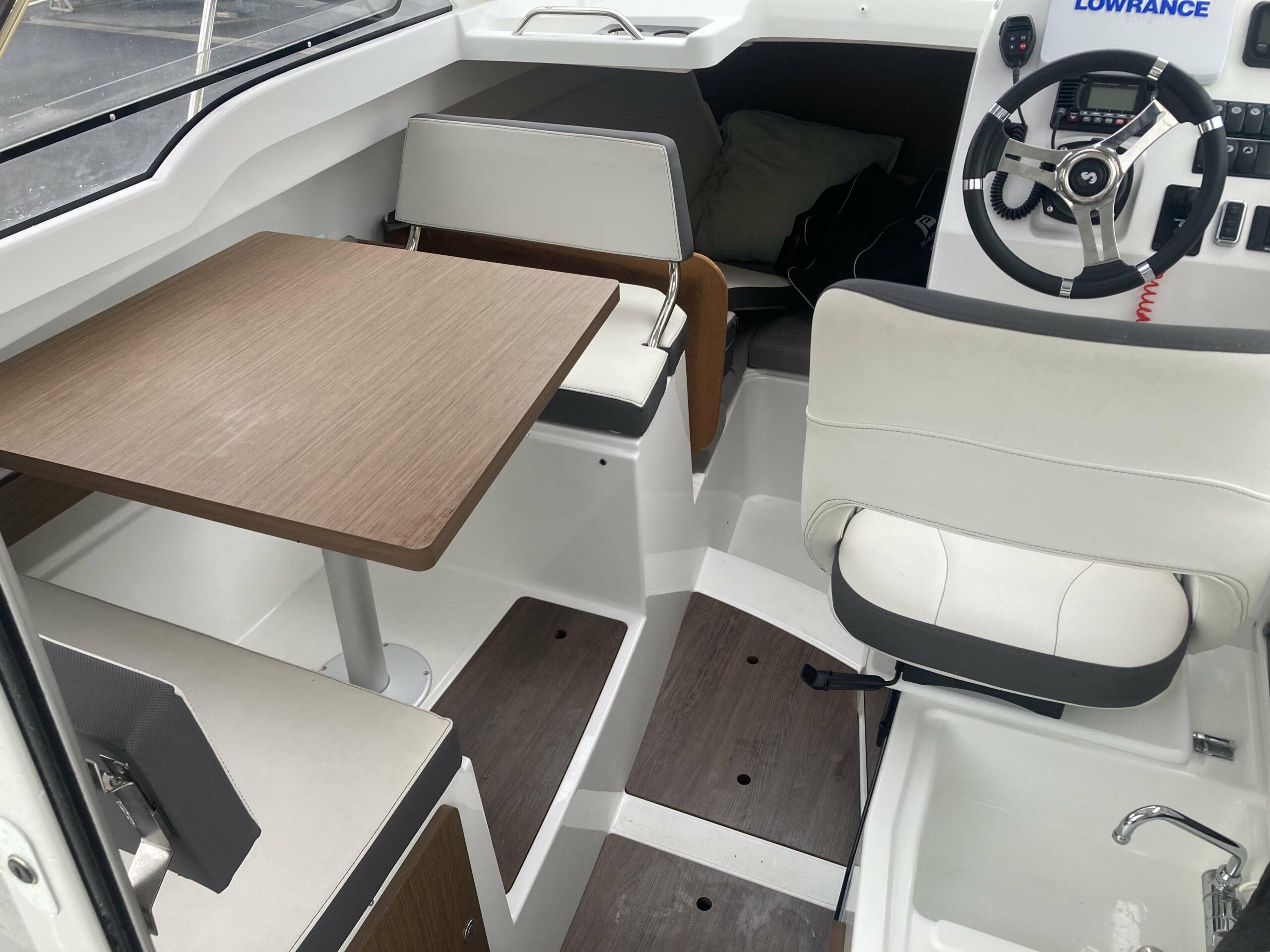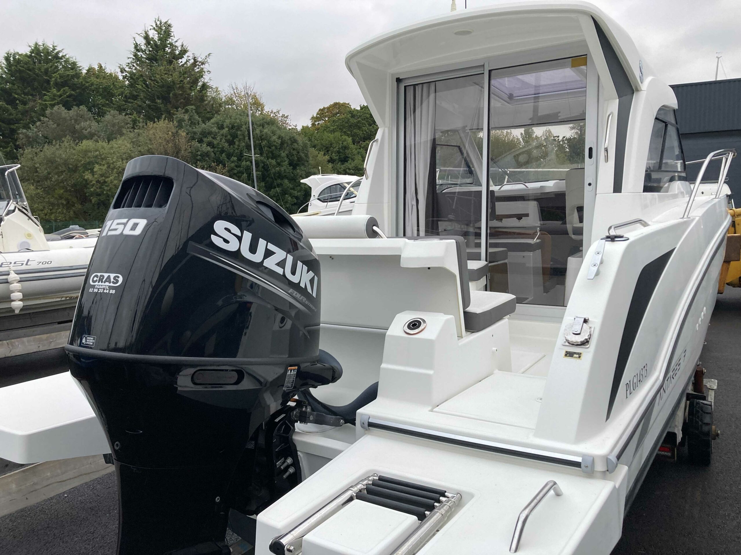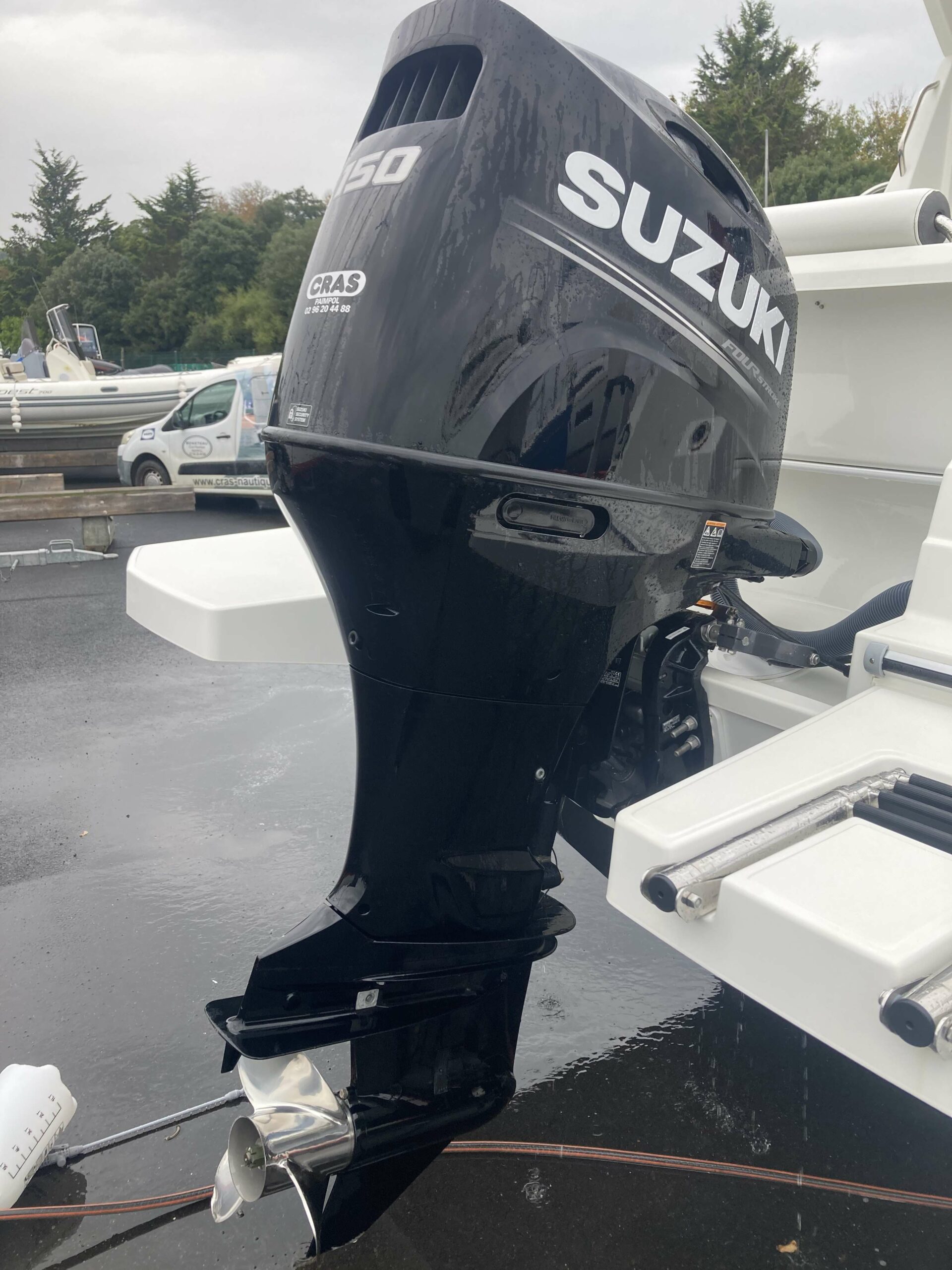 Très belle vedette, en très bon état. Bateau entretenu chaque année. Moteur suzuki DF 150 cv commandes électroniques avec seulement 87 H. Bateau visible chez CRAS NAUTIQUE SAINT-QUAY