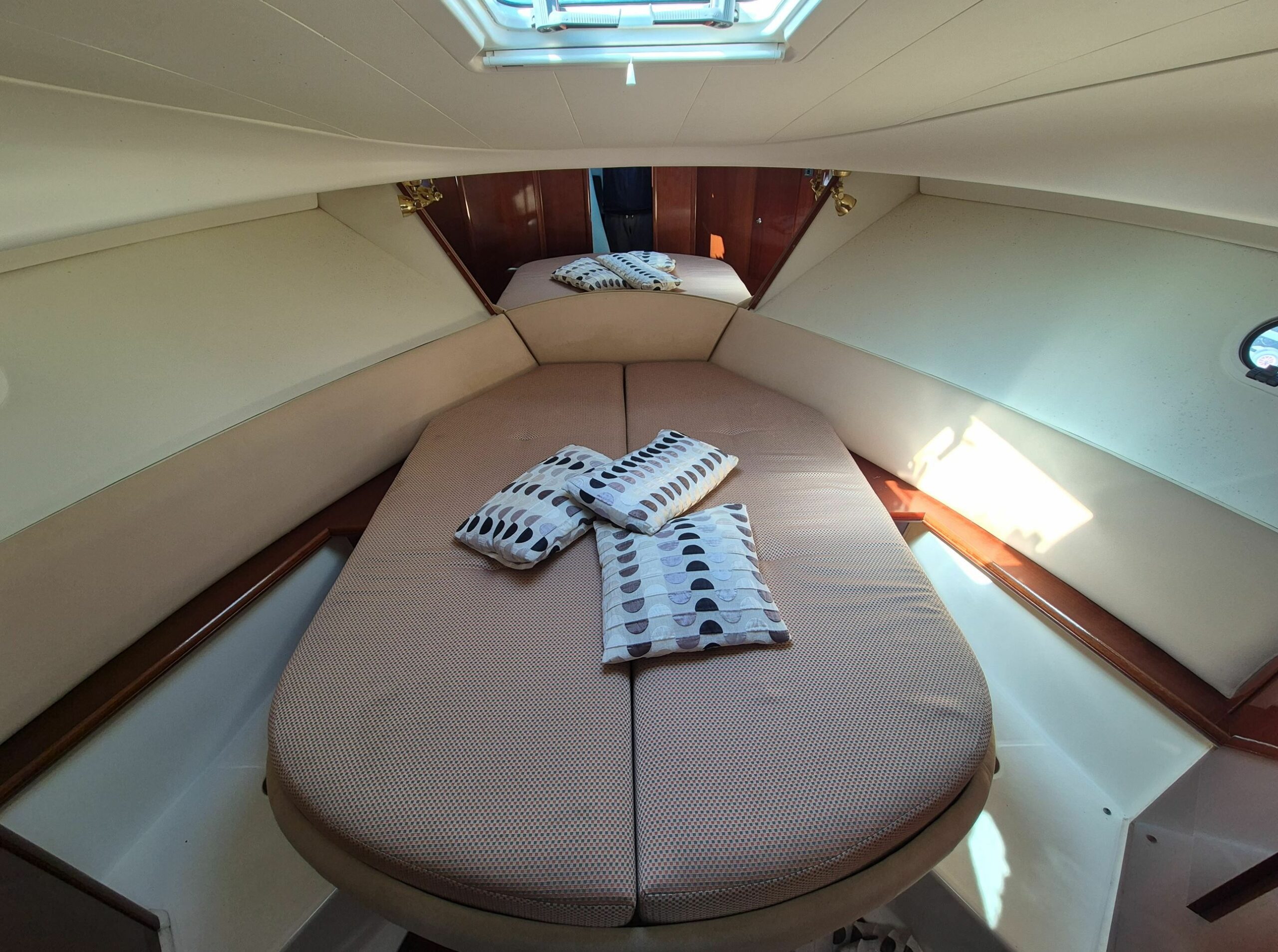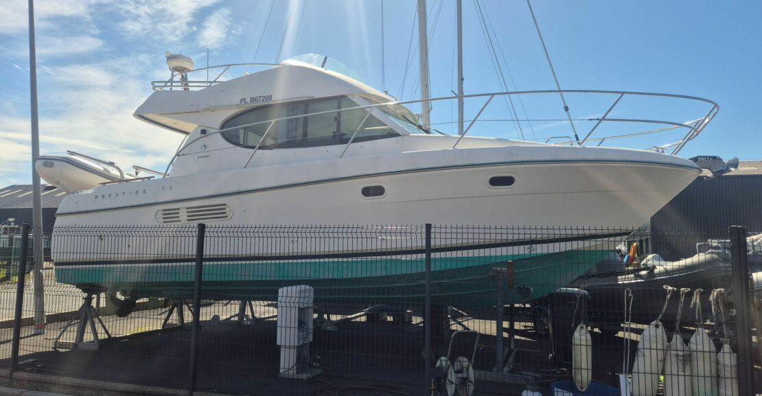 Très belle vedette en dépôt vente chez CRAS NAUTIQUE Paimpol. Jeanneau PRESTIGE 32 de 2002 avec deux moteurs Volvo TAMD 41P de 200cv avec seulement 465 heures. Moteurs entretenus ( à prévoir travaux d’échangeurs , d’où le prix inférieur au marché).