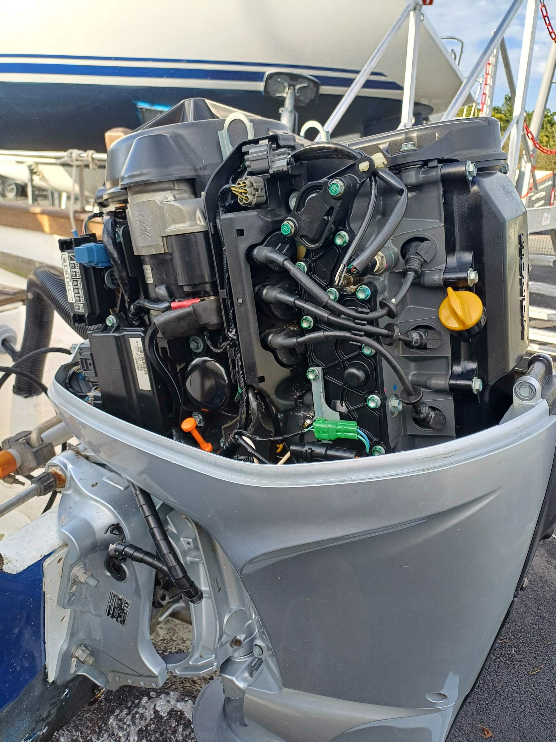 Très rare, coque open KURUNIG 610 remotorisée en 2018 avec un moteur 4 temps injection HONDA BF 60 . Moteur avec actuellement 347 heures, entretenu régulièrement.